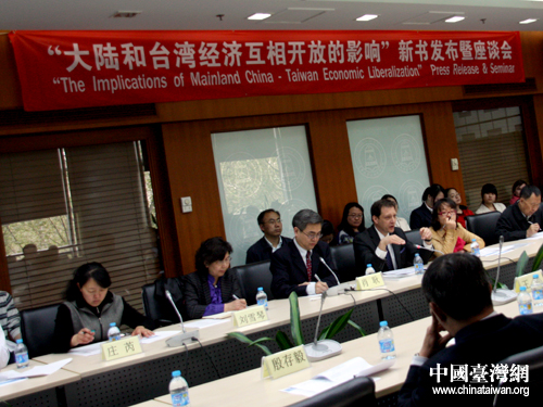 中國臺灣網4月20日北京消息 今日下午,由清華大學臺灣研究所、美國哥倫比亞大學全球中心以及美國彼得森國際經濟研究所共同舉辦的《大陸和臺灣經濟互相開放的影響》新書發布暨座談會在北京舉行。除該書的部分團隊創作人員外,還有多位從事涉臺研究以及經濟研究的大陸專家學者與會,共同探討ECFA簽署后的兩岸效應和影響。與會專家一致認為,ECFA的簽署將助力兩岸經濟的發展和提升,而該書對于兩岸經濟的闡述和分析,意義重大,視野寬闊,具有一定的前瞻性,值得肯定。
