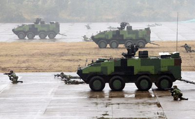 臺軍2015年春節加強戰備,陸軍27日在新竹湖口營區演練,出動CM11戰車、CM32甲車、特戰人員等兵力,展現協同作戰能力。圖片來源:臺灣“中央社”
