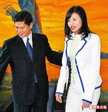 2005年李永得(左)接任臺當局“客委會主委”時,邱議瑩出任“副主委”,兩人就此結緣。 來源:臺灣《蘋果日報》