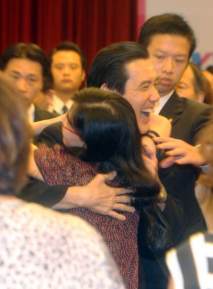 中國臺灣網9月6日消息 據臺灣媒體報道,臺灣地區領導人馬英九今出席臺灣《中學生報》創刊發表會,并發表講話。意外的是活動現場一位女粉絲看到馬英九太高興,沖上前去熊抱馬英九。(中國臺灣網 杜美瑩)
