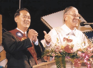 李登輝(右)與親民黨主席宋楚瑜(左),曾經情同父子,也曾經反目成仇,兩人政壇交手數十年,證明“政治沒有永遠的敵人”。資料照片