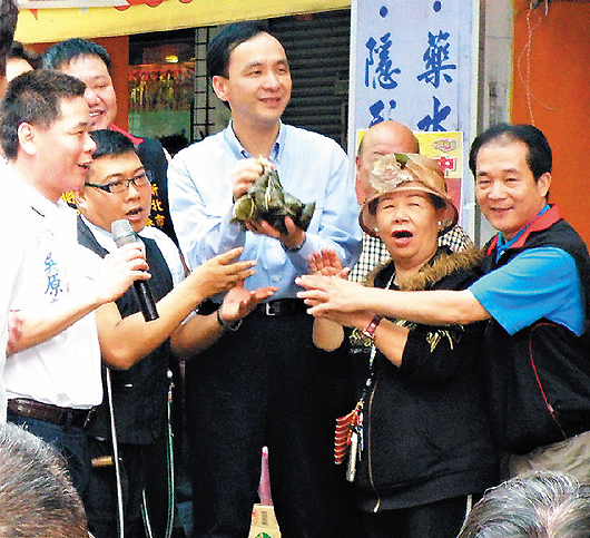 朱立倫參加殘障人士團(tuán)體端午包粽活動(dòng),受到熱烈歡迎。(圖:臺(tái)灣《聯(lián)合報(bào)》)