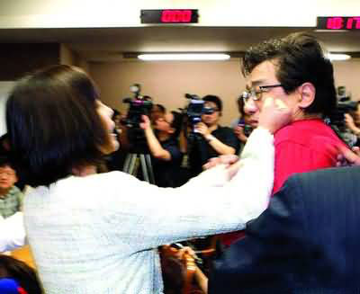 臺灣“立法院內政委員會”去年4月間進行第3次兩會領導人會談報告時,邱議瑩于李慶華發言之際不斷插話,2人發生口角,邱議瑩上前理論,遭李慶華辱罵“沒家教”、“潑婦”,因而當眾掌摑李慶華。李慶華事后到臺北地檢署對邱議瑩提告,邱議瑩也反控李慶華公然侮辱。