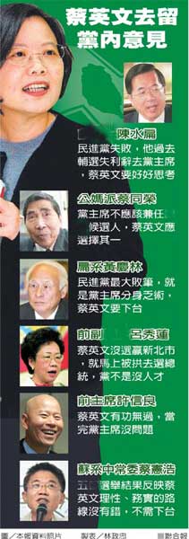 中國臺灣網11月30日消息 據臺灣《聯合報》報道,臺灣五市選舉大戰剛剛落幕,綠營內戰就開打。前臺灣地區領導人陳水扁昨天透過轉述表示,這次選舉民進黨只保有高雄、臺南兩市,是失敗的,他過去輔選“立委”失利后就辭去民進黨主席,蔡英文自己應該好好思考。