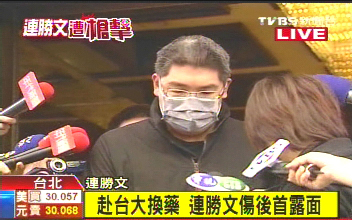 連勝文中槍后首次露面。 來源:臺灣TVBS電視臺