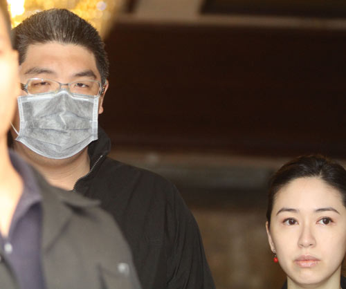 國民黨中央委員連勝文(左)于“五都”選前輔選時遭槍擊,時隔10多天后,連勝文10日在妻子蔡依珊(右)陪同下,首度公開露面。 圖片來源:“中央社”