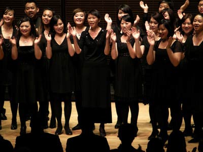 臺北愛樂室內合唱團今天上半場的曲目包括多個名曲,包括臺灣創作的《蟑螂》、菲律賓作曲家的《Gloria》,及蒙古作曲家的《八駿贊》。