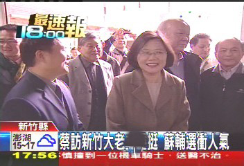 中國臺灣網(wǎng)3月24日消息 據(jù)臺灣TVBS電視臺報道,蔡英文和蘇貞昌昨(23)日“碰撞”參加民進(jìn)黨2012“大選”初選,今日2人則分別到地方上結(jié)善緣拼人氣。臺媒稱,2人的地方勢力爭奪戰(zhàn),已經(jīng)開打。