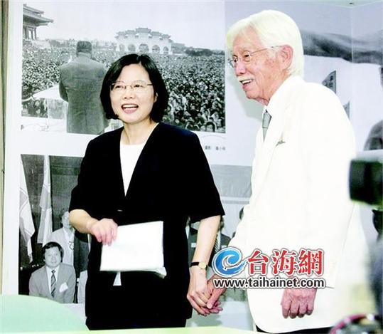 蔡英文和“獨派”大佬辜寬敏手拉手(資料圖)