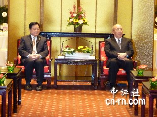國民黨榮譽(yù)主席吳伯雄(右)22日晚間宴請(qǐng)四川省長蔣巨峰(左)。圖片來源:香港“中評(píng)社”