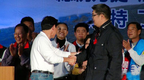 槍傷后首度同臺助選 馬英九送連勝文平安符(圖)