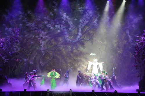 當晚,上海虹口體育場不落幕、不暗燈,同一時間、不同空間發生的“白蛇”故事一一展現在觀眾眼前。絢麗的舞臺配以噴火、“變臉”等富有民俗特點的絕活設計,《超炫白蛇傳》成為一場超級視覺盛宴。