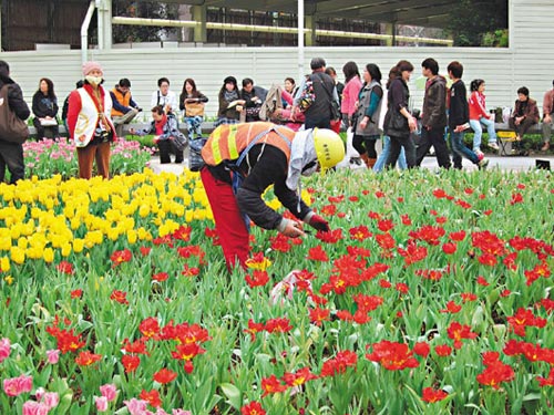 只不過,上月25日已先換上部分郁金香,但卻有不少郁金香凋零,游碧寧表示,郁金香天氣越冷開得越好,但因為春節期間,北部氣溫回升,再加上郁金香花期本就只有7至10天,才會造成部分郁金香先“謝掉”了。
