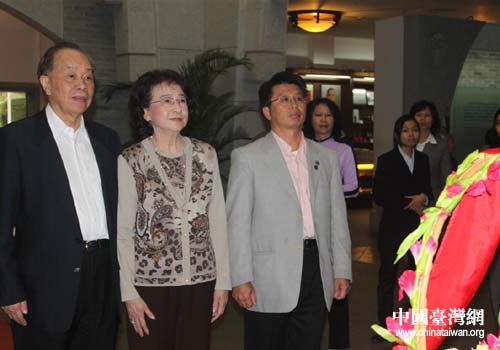 林澄枝女士、謝孟雄先生、劉弘景教授向孫中山銅像敬獻花籃(圖片來源:中山市臺辦)
