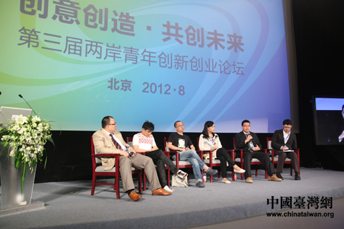 主持人與5名兩岸青年創業家在論壇現場探討創業環境與機遇。(中國臺灣網 黃艷艷 攝)