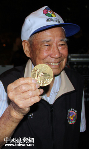 86歲的臺(tái)灣老兵向記者展示自己去北京游玩時(shí)購(gòu)買的紀(jì)念幣。(中國(guó)臺(tái)灣網(wǎng) 高斯斯 攝)