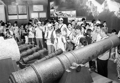8月1日,長城文化之旅——海峽兩岸大學生文化體驗營在秦皇島市山海關(guān)正式開營。來自大陸和臺灣的30名大學生將在河北和山西境內(nèi)開展長城考察活動,了解長城文化。圖為兩岸大學生在長城博物館參觀。楊寬攝(新華社發(fā))