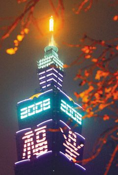 圖:臺北101大樓秀“春”“福”字樣拜年