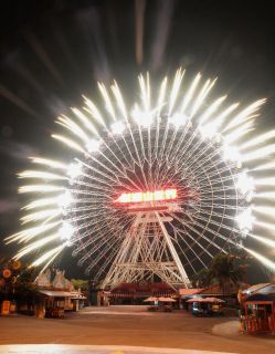 在摩天輪上施放煙火,將摩天輪設(shè)計成巨大燦爛的煙火球,創(chuàng)造出的視覺效果令人驚艷贊嘆。云林縣一處大型游樂場為迎接2009年新年,跨年夜當(dāng)晚將推出煙火秀,15日晚上先行試放時,美麗景象就讓現(xiàn)場民眾忍不住發(fā)出陣陣驚呼。