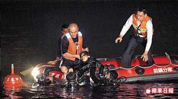 警方與臺灣港務(wù)局消防隊、高雄市消防局救難人員出動救生艇,并派潛水員潛入海中搶救,由于海水溫度僅約7℃,加上車子沉入6米的海底、車頭插入1米的爛泥中,4人分別擠在車后座,搶救困難。
