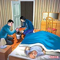 鐘裕雄與妻子林寶雪,疑似將父親鐘火路喂藥后,在其房內燒炭。然后夫妻兩人接著回臥室手綁紅線燒炭自殺。來源:臺灣《蘋果日報》