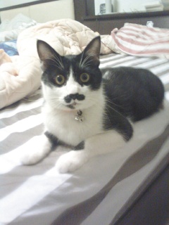 臺灣花蓮市的鄧瑞梅養(yǎng)了一只造型很奇特的流浪貓,由于它天生擁有黑胡子,大家叫它“巴格野鹿”(日本話“混蛋”之意);別人說它丑,但主人鄧瑞梅卻認(rèn)為,貼心的“巴格野鹿”酷斃、帥透了。