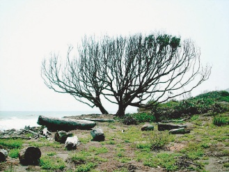 這兩株屹立臺東縣南田海邊逾百年的瓊崖海棠,臺東縣政府同意列入老樹保護。圖片來源:臺灣《聯合報》