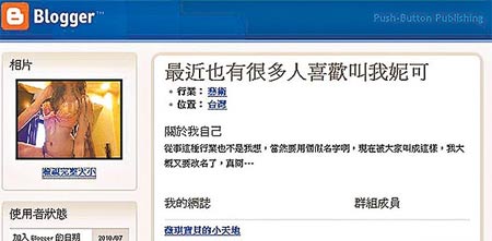 冒名妮可的部落格格主自我介紹寫著:“最近也有很多人喜歡叫我妮可。”