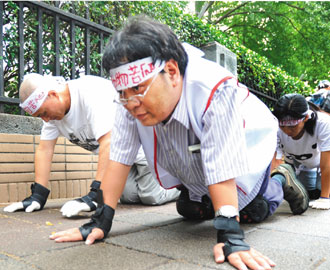 25日開(kāi)始,民眾可能會(huì)連續(xù)8天在街頭見(jiàn)到一群在地上爬行的群眾。他們放下人類高度,以動(dòng)物的視野及角度,親身體會(huì)流浪貓狗在城市內(nèi)的無(wú)助,以此為流浪動(dòng)物請(qǐng)命,要求當(dāng)局重視流浪貓狗。圖片來(lái)源:臺(tái)灣《聯(lián)合報(bào)》