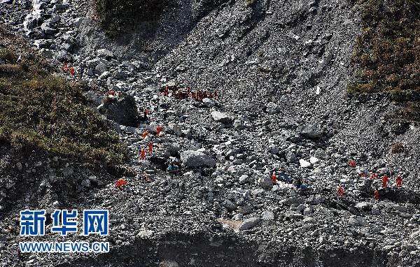 據(jù)徐松奕介紹,這個(gè)沖擊面所在位置的土石堆積高度達(dá)20米。陸上搜救部門31日派了120余名搜救人員在這里搜尋,并投入16部機(jī)械和三只搜救犬。