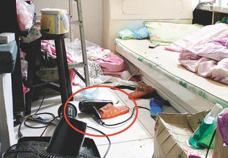 簡姓少女昨天使用吹風(fēng)機(紅圈處),不知為何昏迷,造成小腿嚴重灼傷,其父發(fā)現(xiàn)后立刻將她送醫(yī)。圖片來源:臺灣《聯(lián)合報》