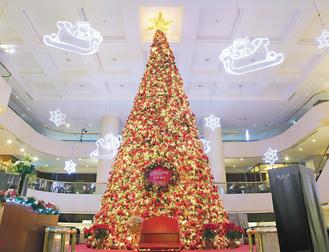 晶華酒店的圣誕樹有三層樓高,雪花、麋鹿與耶誕老人從天而降,圣誕氛圍濃。圖片來源:臺灣《聯合報》