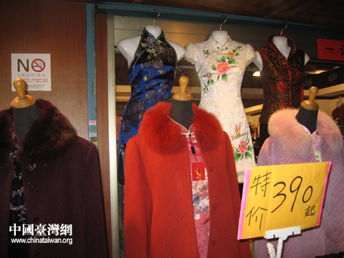中國(guó)風(fēng)的旗袍,一件要價(jià)不到臺(tái)幣四百元。