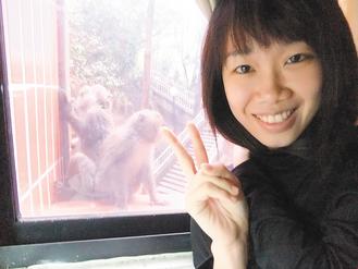 也有學生和猴子拍照留念。圖片來源:臺灣《聯合報》