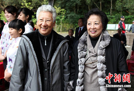 資料圖:2月19日,著名愛國將領(lǐng)張學(xué)良的兩位侄女張閭蘅(右)、張閭芝來到臺(tái)灣新竹縣五峰鄉(xiāng)走訪伯父故居,并參加遼寧參訪團(tuán)向新竹縣捐款改建張學(xué)良紀(jì)念園儀式。中新社記者 符永康 攝