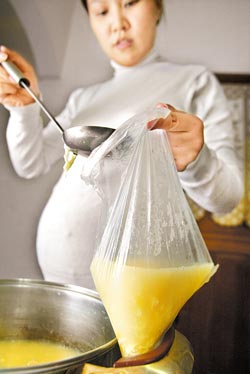 臺灣孕婦體內塑化劑是美國人的10倍以上,可能殘害嬰兒,用塑料袋裝熱食會受塑化劑污染。圖片來源:臺灣《中國時報》
