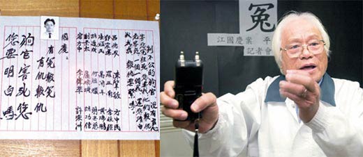 15年前在臺(tái)空戰(zhàn)部服役的上等兵江國(guó)慶被槍決后,他的父親江支安多年不懈提醒自己為兒子洗清冤情。圖片來(lái)源:臺(tái)灣媒體