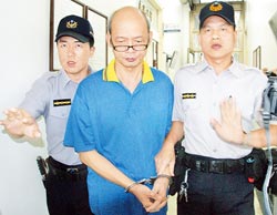 ▲黑心起云劑案4日下午在彰化地方法院開庭,昱伸公司負責人賴俊杰(中)開庭后由法警戒護還押看守所。圖片來源:臺灣《中國時報》