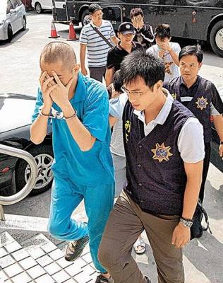 彰化警方將詐騙集團(tuán)主嫌曾希哲(左一)等帶回警局偵訊。圖片來(lái)自網(wǎng)絡(luò)