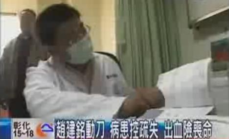 中國(guó)臺(tái)灣網(wǎng)1月23日消息 據(jù)臺(tái)灣TVBS電視臺(tái)報(bào)道,日前有一名女病患指控,陳水扁女婿趙建銘在為自己進(jìn)行手術(shù)時(shí),造成她動(dòng)脈破裂大出血,性命險(xiǎn)些不保,致使現(xiàn)今還臥病在床。女病患控訴趙建銘避不出面,甚至她到醫(yī)院調(diào)病歷還被刁難。病人家屬表示,趙建銘當(dāng)初宣稱手術(shù)風(fēng)險(xiǎn)很小。趙建銘的弟弟趙建勛今天出面代為說(shuō)明,表示不可能沒(méi)有告知手術(shù)風(fēng)險(xiǎn)。