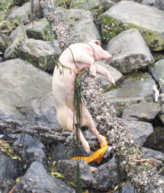 金門“小三通”水頭港區驚見疑似大陸沿海漂來的死豬。圖片來自臺灣《聯合報》