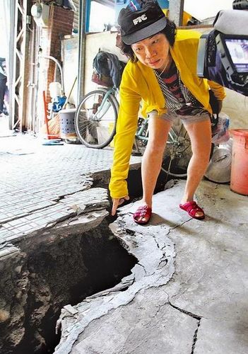 據臺灣媒體報道,臺灣彰化市江南花園城小區因連續大雨,28戶房子出現嚴重傾斜下陷,路面多處爆出寬60公分、深120公分長短不一的裂痕,幾乎可以吞掉一個小孩,而且受損面積不斷擴大,前晚(8月31日)縣府已緊急撤離120名住戶!彰化縣建筑師與土木技師公會昨天(1日)實地勘查,分析原因是連續大雨地層含水量過高、無法負荷、加上排水不良,才導致地層下陷,因整修補強效果不大,將面臨拆除重建。
