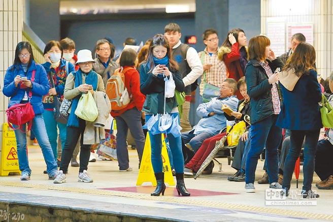 臺鐵桃園到鶯歌段23日早晨6時許發生電車線斷落意外,南下僅行駛到鶯歌,北上到內壢,對通勤族造成極大影響;事發后臺北車站南下月臺擠滿等待搭車的旅客。(圖片來源:臺灣中時電子報 黃世麒攝)