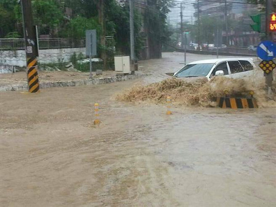 據臺灣“中時電子報”報道,清晨大雨,基隆武侖溪暴漲,基隆市安樂區大武侖淹水,基金一路的208巷附近災情慘重,有民眾在臉書貼圖說“出不去了”,從高樓往下望,街道滿是滾滾黃泥水,水淹及膝最高一度甚至到腰,基隆市府上午9點半召開緊急應變會議,目前水已退。