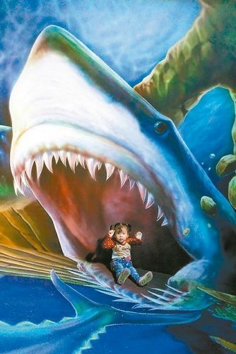 “救命啊!”小女孩一靠近墻上的鯊魚,擔心下一秒就要被吃掉,逼真的場景,讓她嚇得差點哭出來。