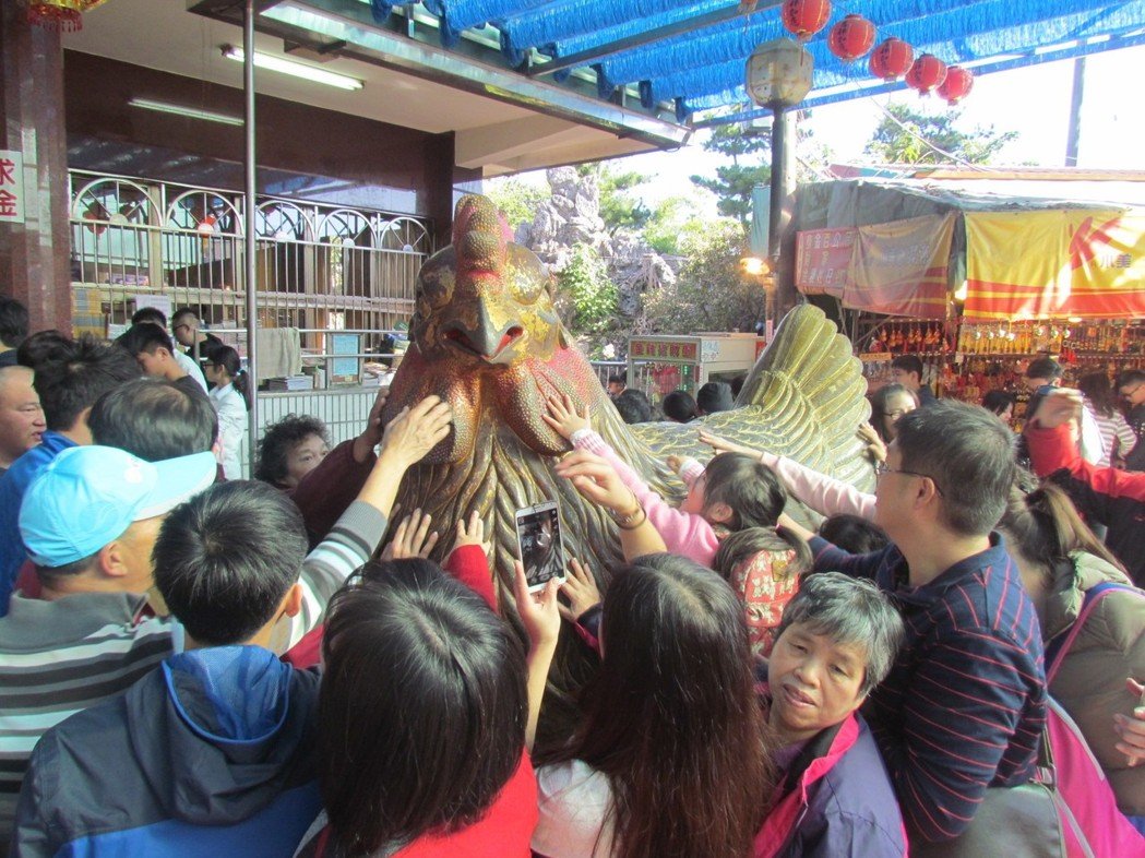 金雞是紫南宮的吉祥物,紫南宮借金處前的金雞,擠滿了大批信眾。(圖片來源:臺灣《聯(lián)合報》)