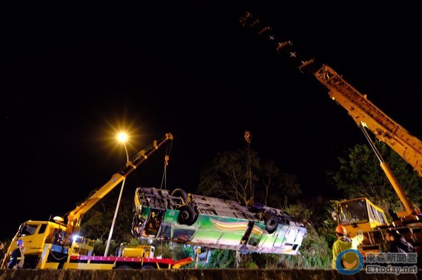 臺灣“2.13”游覽車高速公路翻覆,造成33人罹難、11人輕重傷。(圖片來源:臺灣“東森新聞云”)