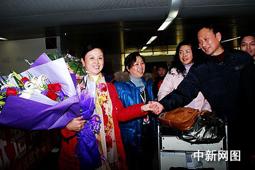 中新網蘇州1月16日電(李克祥)15日下午,蘇州第三位成功對臺捐髓者韓秀芳,她的丈夫顧華一,還有全程陪同的“大陸對臺捐髓第一人”杭彬,一行三人從北京飛回上海虹橋機場。蘇州市紅十字會、韓秀芳工作單位蘇州監獄的工作人員、蘇州市相城區的十二位小學生等一起前往迎接。