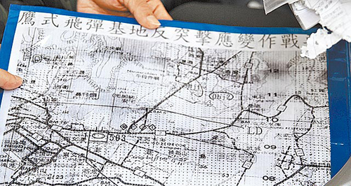 棄置文件包括鷹式飛彈基地反突擊應(yīng)變作戰(zhàn)圖。圖片來源:臺灣媒體