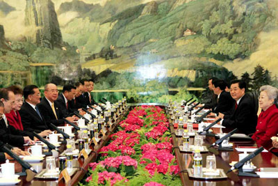 2005年4月29日下午,中共中央總書記胡錦濤在人民大會堂福建廳和中國國民黨主席連戰在北京舉行正式會談。胡錦濤說,兩岸關系發展正處在一個關鍵時期。構建和平穩定發展的兩岸關系,對兩岸同胞有利,對中華民族的長遠發展有利。我們兩黨應該為此作出積極努力。胡錦濤就發展兩岸關系提出4點主張。